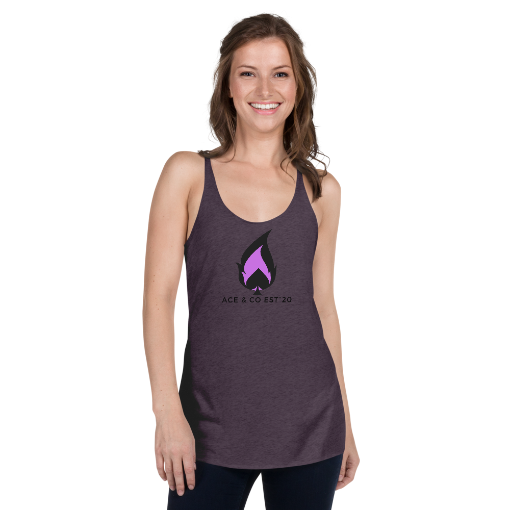 ACE & Co erbjuder Purple flame. Racerback-tanken är mjuk, lätt och figursydd. Tri-blandning tyget ger det tryckta mönstret ett coolt, blekt utseende medan den råa kanten ger en häftig ”edgy touch”.